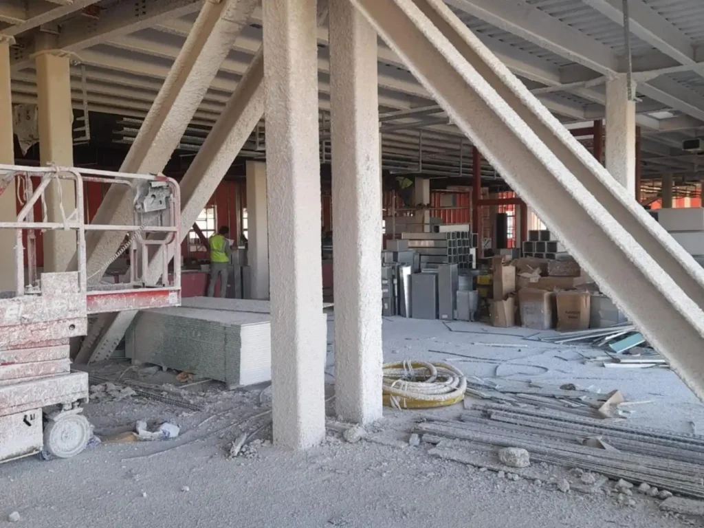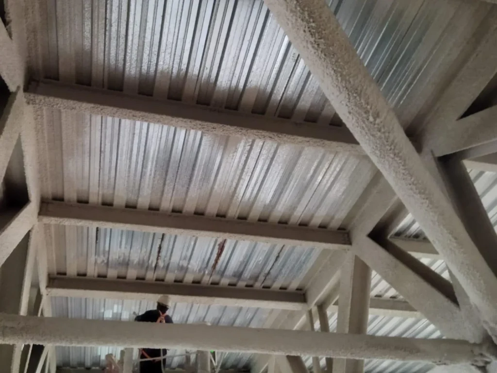 Uygulama yaptığımız ürün, CE standardında iki farklı çözüm sunar, biri çelik yapıların yangın yalıtımı diğeri beton altı kompozit döşeme elemanlarının yangın yalıtımıdır.
